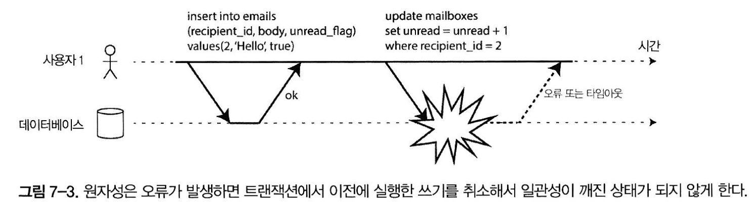 - 단일 노드 데이터베이스와 분산 데이터베이스에 모두 적용되며 분산 시스템에서만 생기는 특정 난제는 8장에서 다룬다.