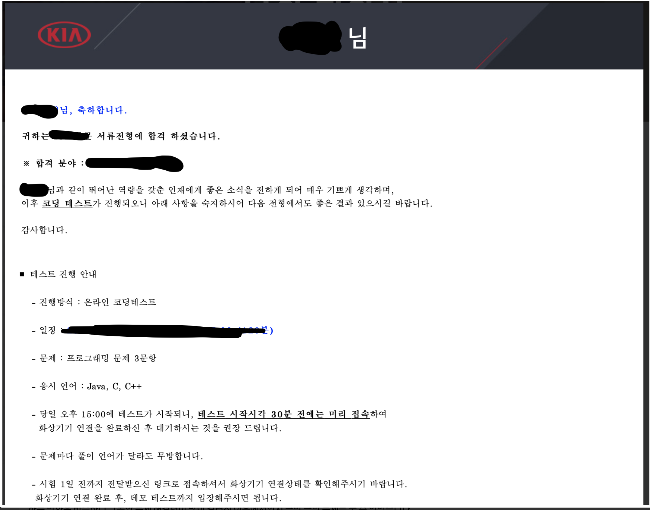 오늘은 기아자동차 전형 4단계(서류 - 코테 - 1차 면접 - 2차 면접) 중 최종 관문인 임원면접 후기를 들고 왔습니다!